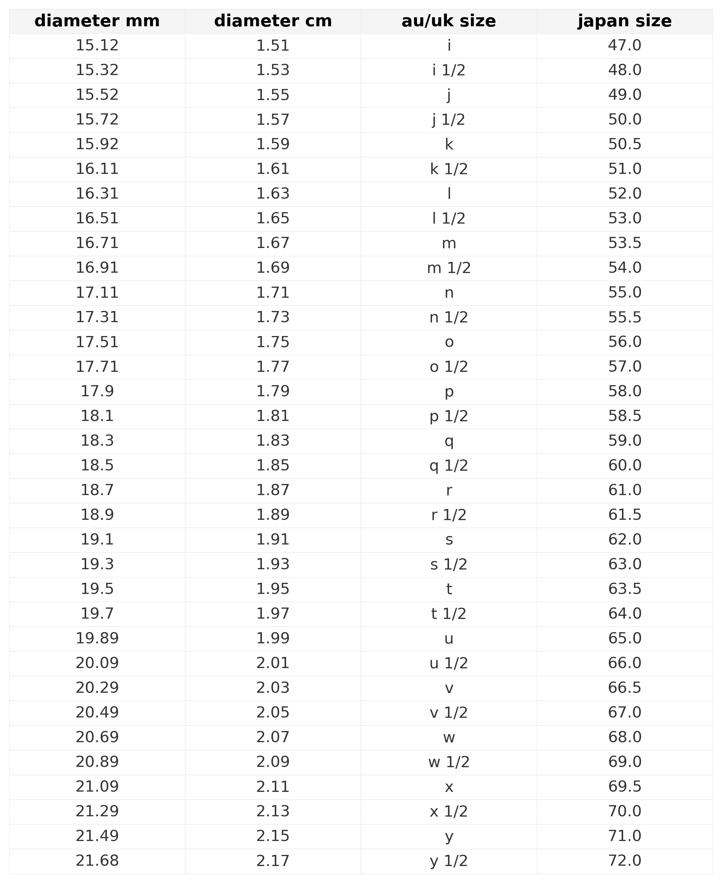 example | if the ring's diameter measures 18.7 mm, select size r